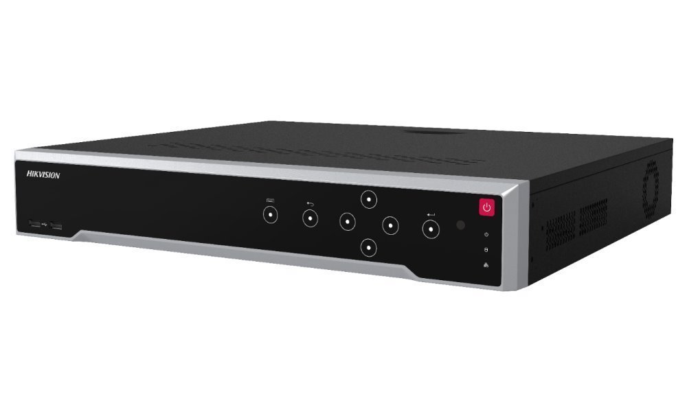 Porty: 1× 8K HDMI výstup, 1× 4K HDMI výstup, 1× VGA Full HD výstup, 2× USB 2.0, 1× USB 3.0, 2× RJ-45, 1× CVBS video výstup (BNC), 16× alarm vstup, 9× alarm výstup, 1× audio vstup, 1× audio výstup, 1× RS-232, 2× RS-485, 1× eSATA